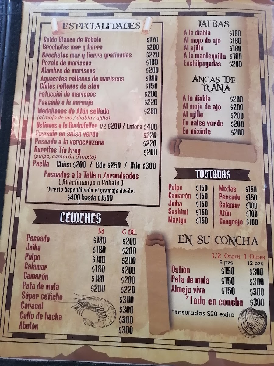Welcome to Pescados y Mariscos Tío Froy, a culinary gem nestled in Iztapalapa, Mexico City. Renowned for its vibrant seafood offerings, Tío Froy invites you to explore a menu brimming with flavor and freshness. Here, the star attractions are the mojarras, with delectable preparations like Al Mojo de Ajo and A la Diabla, each dish showcasing a perfect balance of spices and textures.